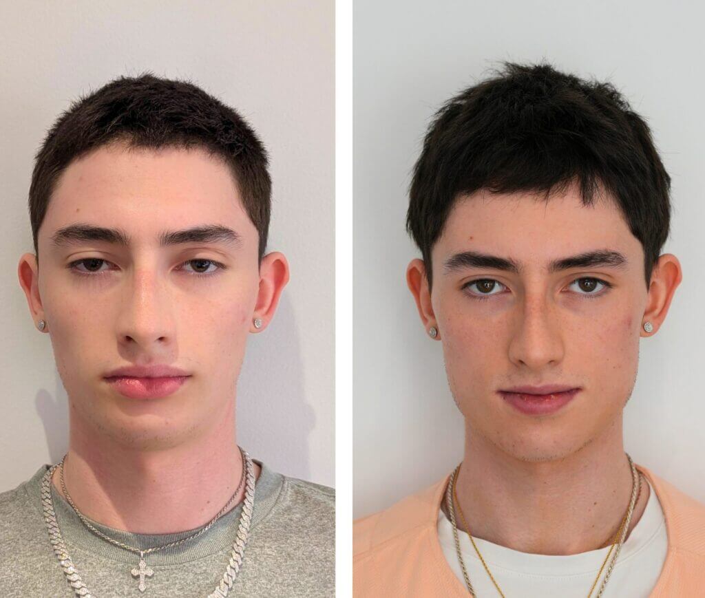 Genioplasty changes chin position, not teeth; bite remains the same. If your bite is part of the problem, we’ll discuss orthognathic options.
